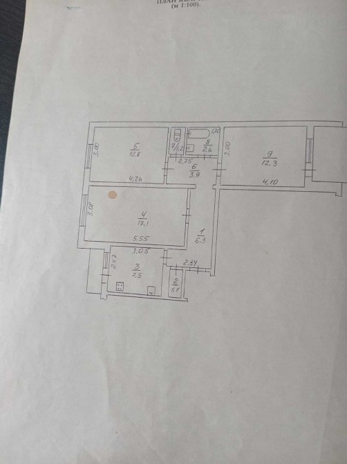 Загальна площа квартири становить 67.9 кв.м, житлова площа 42.2 кв.м, площа кухні 7.5 кв.м. Квартира велика, усі кімнати роздільні.
