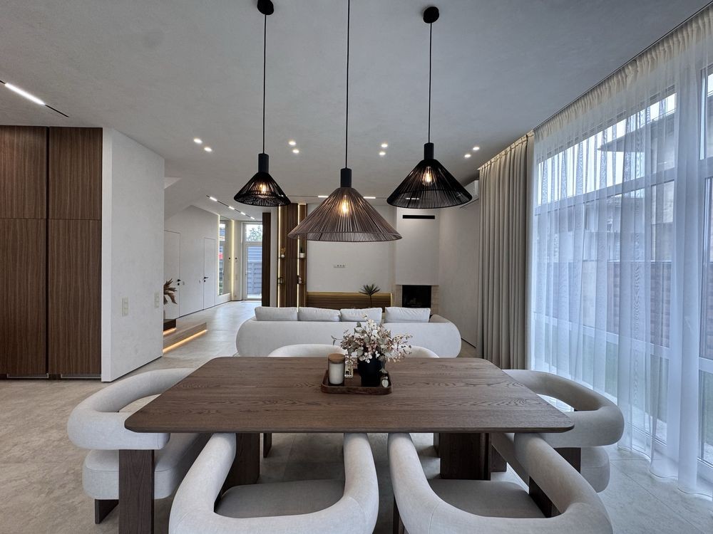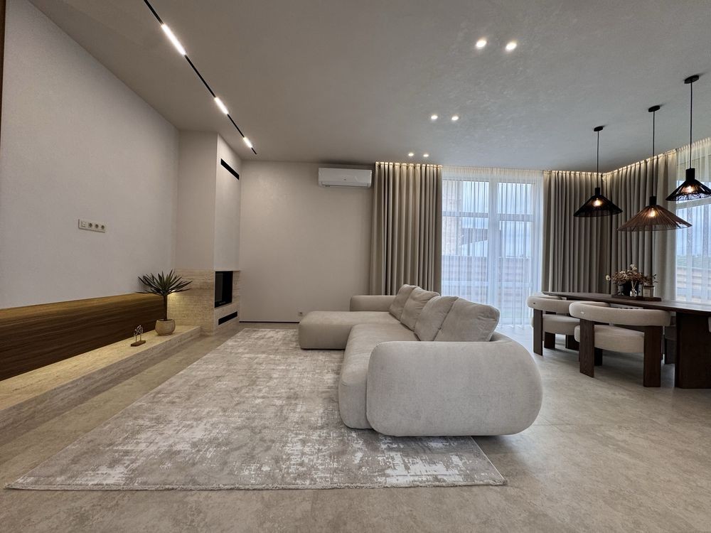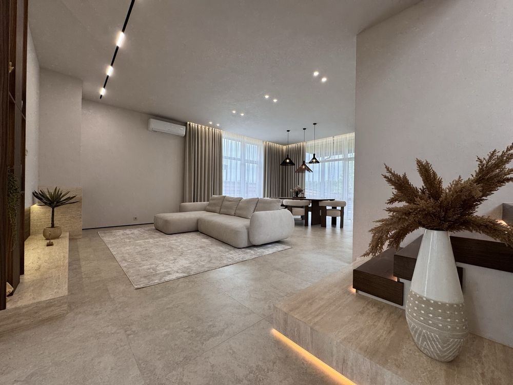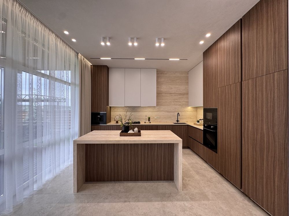 • Велика кухня-вітальня з панорамними вікнами та виходом на терасу – відмінне місце для зустрічей з родиною та друзями.