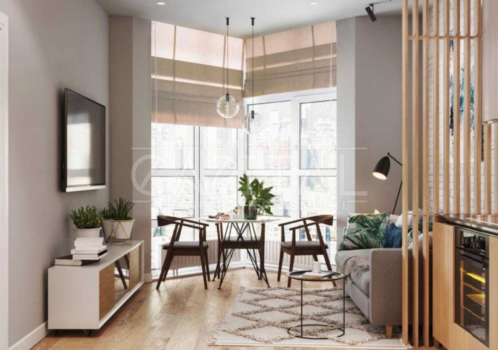 - кухня вітальня з розкладним диваном та обіднім столом;
