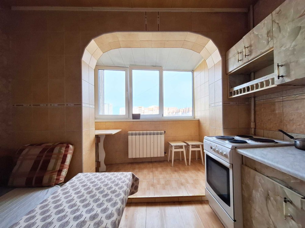Квартира знаходиться в 16-поверховому будинку на 14 поверсі. Площа 35 кв.м., кімната 17 кв.м., кухня 12 кв.м.
