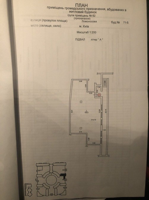 Приміщення в н/ф, вулиця, Ломоносова 71-Б, Голосіївський район, метро ВДНХ, Васильківська, Іподром. Загальна площа - 122 м2, цоколь, висота потолка - 4 м2, без ремонту, 5-великих вікна, фасадний вхід від дороги.