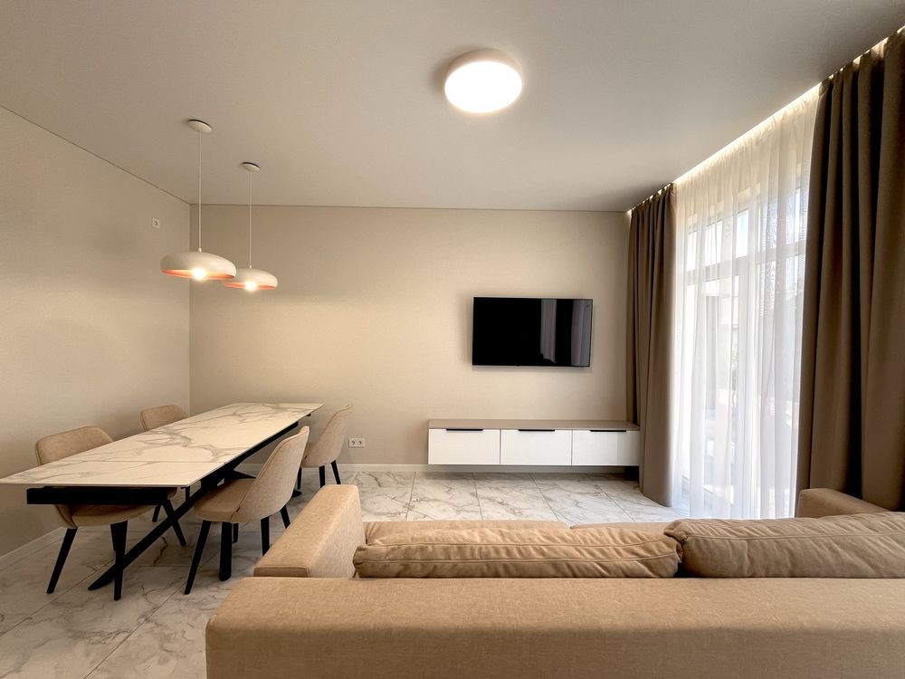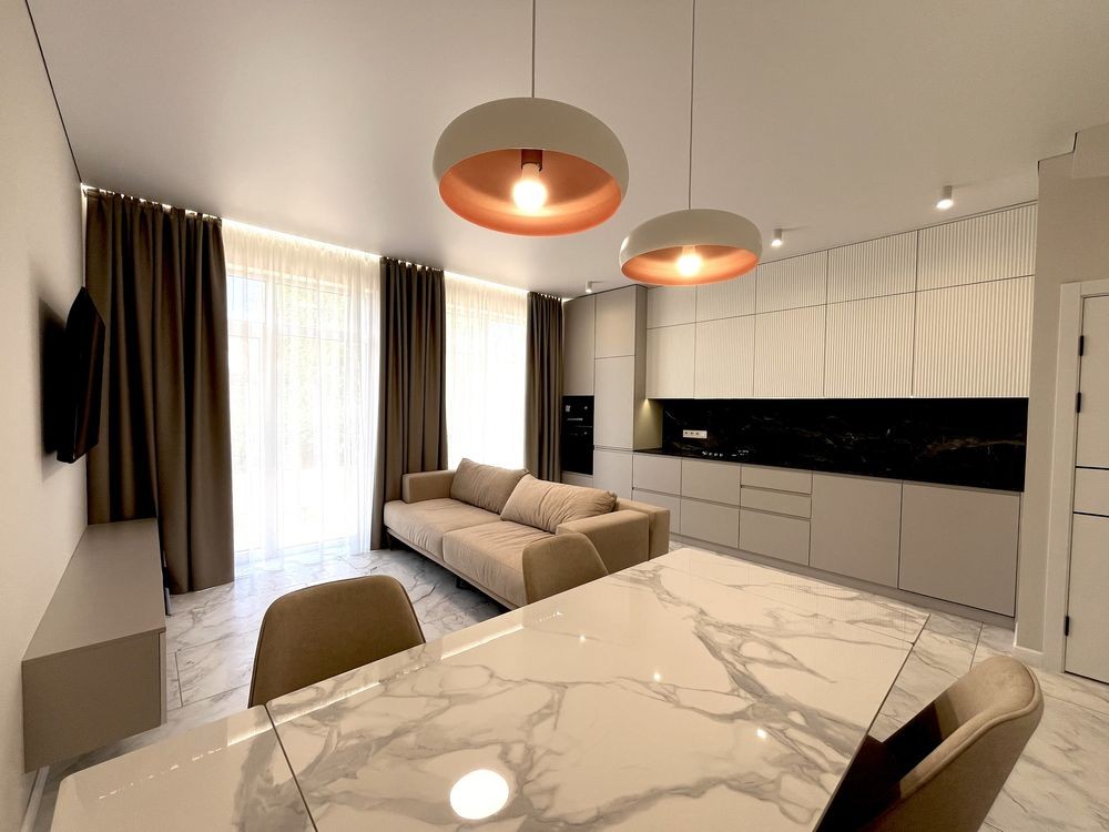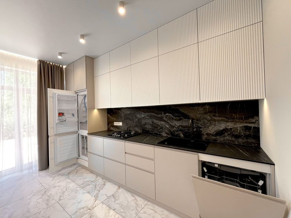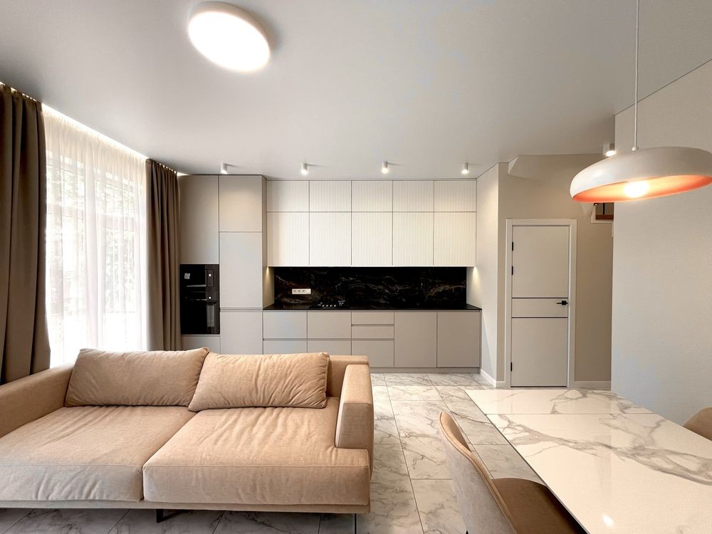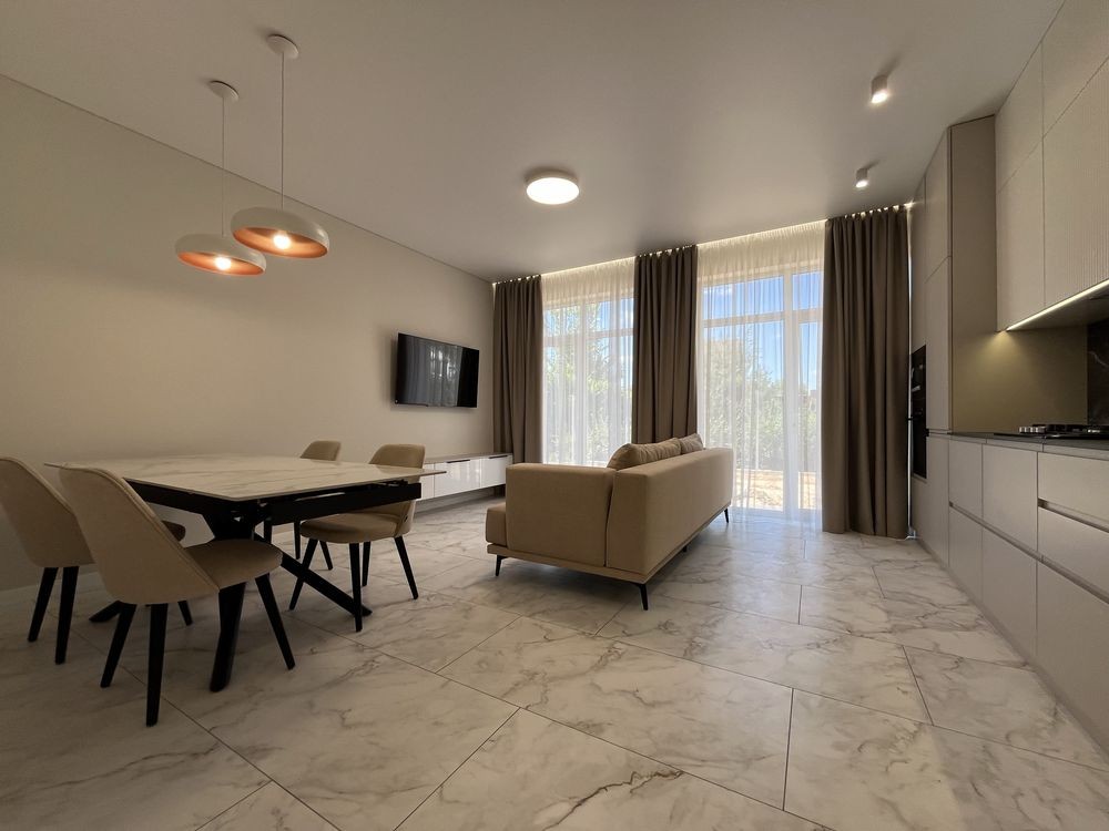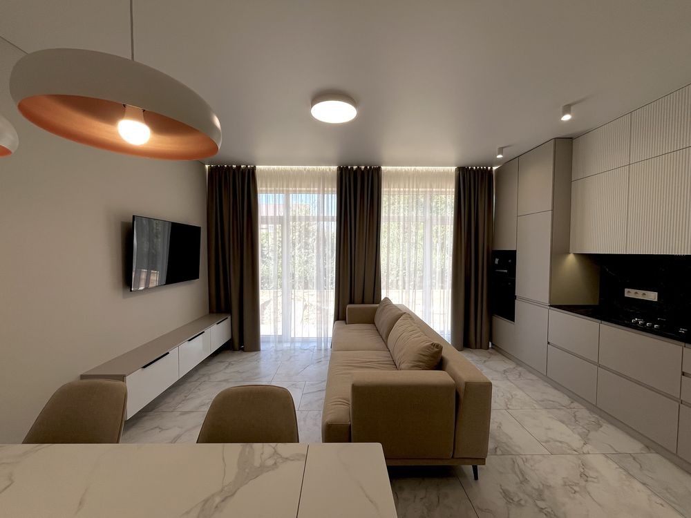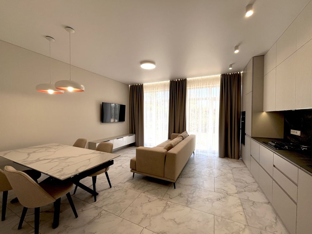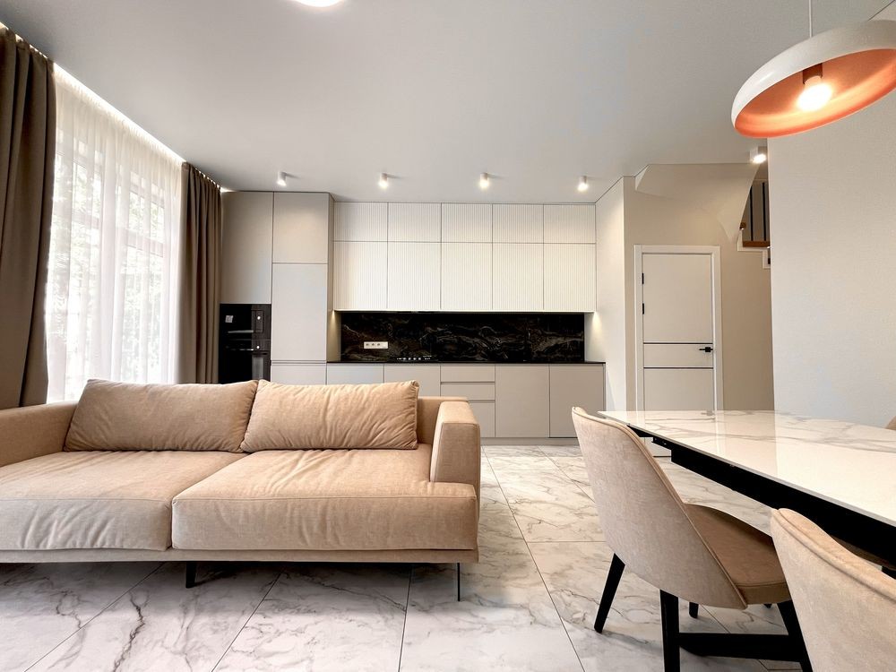 Мебльована кухня, вхідна група , майстер спальня і санвузли .