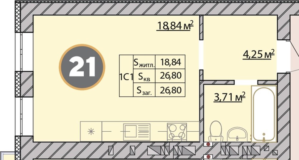 Метраж: 27,2 м²