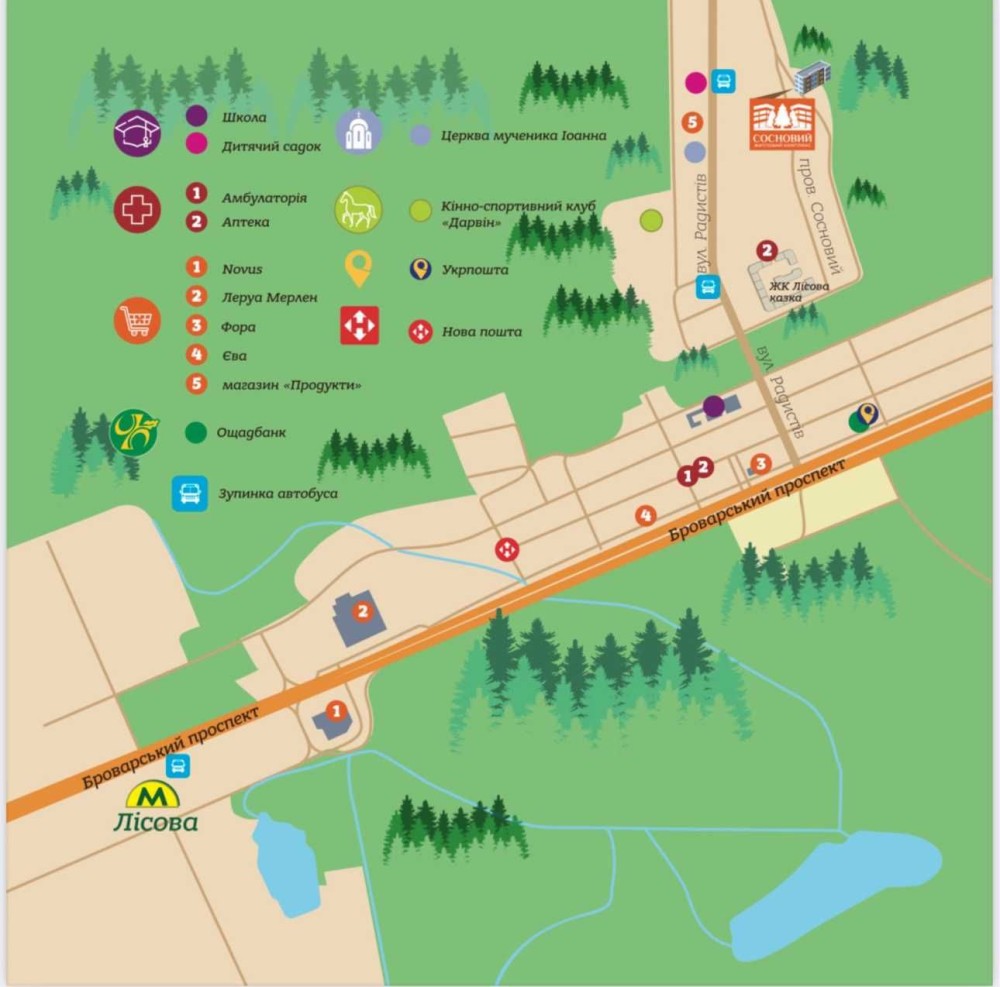Є вся необхідна інфраструктура для комфортного проживання.