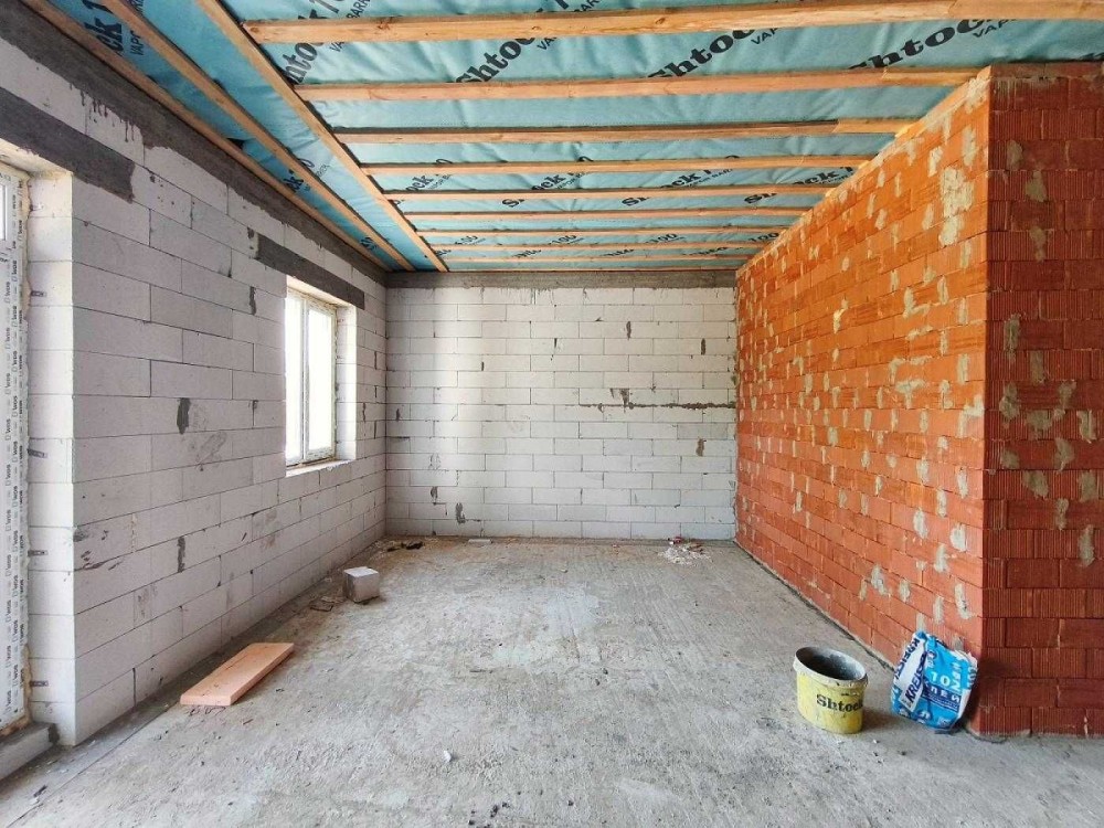 Фасад будинку комбінований з клінкерної плитки і фасадної штукатурки. Внутрішні міжкімнатні перегородки виконані з цегли.