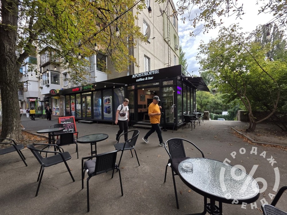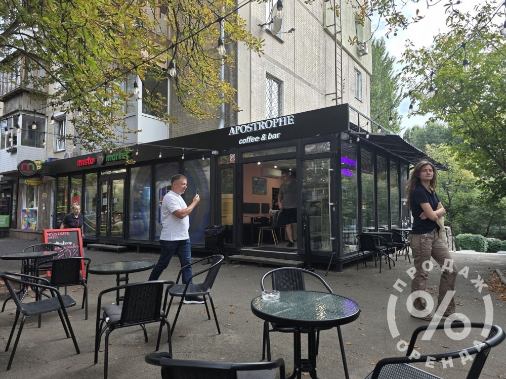 Перше приміщення площею 21,1 м² орендує Apostrophe Coffee Bar. Це компактна кавʼярня з продуманим плануванням, усіма комунікаціями та літньою терасою перед входом.