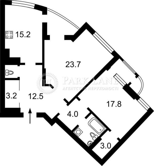 • Площадь кухни 15 м2