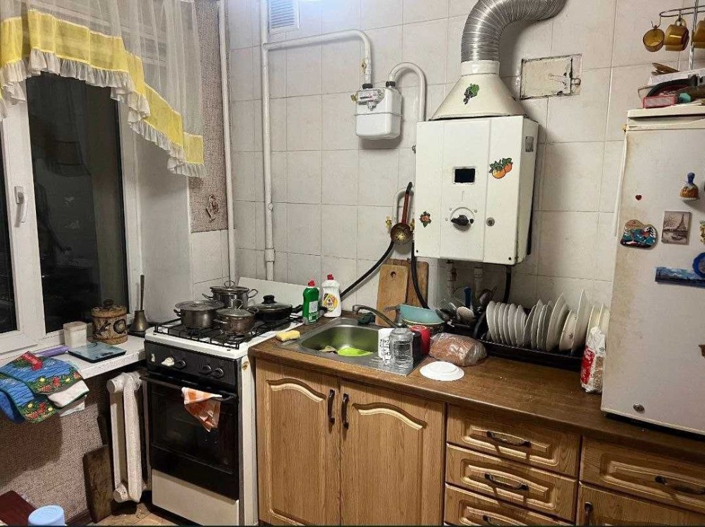 Встановлена газова колонка, у подарунок покупцю залишається кухонний гарнітур.