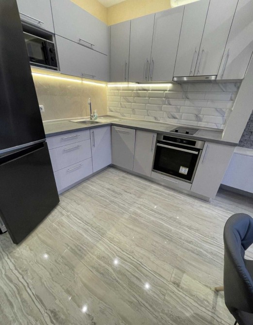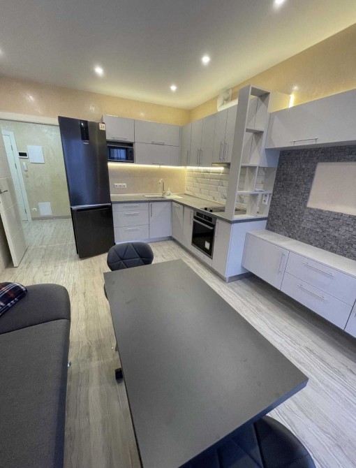 Двокімнатна дворівнева квартира з новим якісним ремонтом у ЖК «Кришталеві Джерела» по вул. Метрологічна, 52. Перший поверх — кухня та санвузол, другий поверх — дві кімнати, великий засклений балкон і санвузол. Ремонт виконували для власного проживання. Квартира не кутова, з відмінною тепло- та шумоізоляцією, висота стелі — 2,75 м. Повністю мебльована та укомплектована технікою: кухня під замовлення, три кондиціонери CooperHunter, бойлер, посудомийна машина, великий холодильник, заведений газ. Два санвузли, мармурові сходи. Стіни — газоблок + цегла, утеплення — мінеральна вата. Встановлені індивідуальні лічильники на воду, електроенергію та тепло. Право власності більше 3 років.