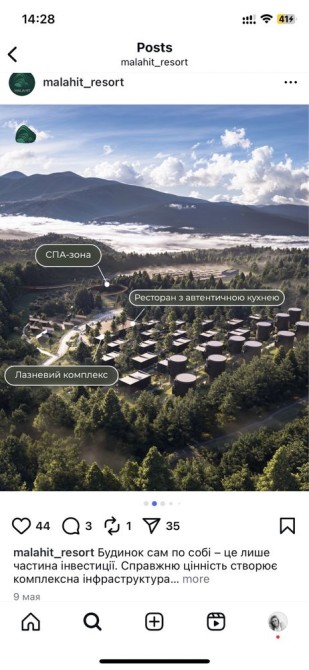 Надійний забудовник - MBA DEVELOPMENT GROUP, з такими вже побудованими і працюючими обʼєктами як МОРІОН РЕЗОРТ в с.Микуличин, МЕЛАНІТ РЕЗОРТ СПА в с.Поляниці, АГАТ РЕЗОРТ СПА в с. Микуличин, NETRI SPA LOUNGE в с. Павлівка, ЖК Рубін в Коломиї ті інші.