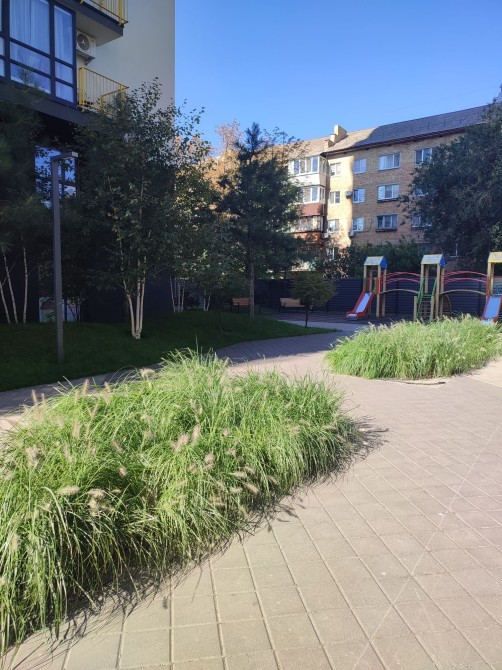 Доглянута територія з ландшафтним озелененням, дитяча та спорт майданчики. Підземний паркінг