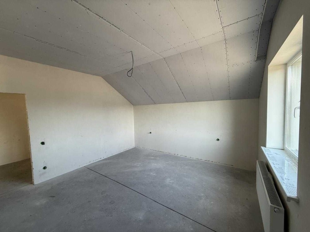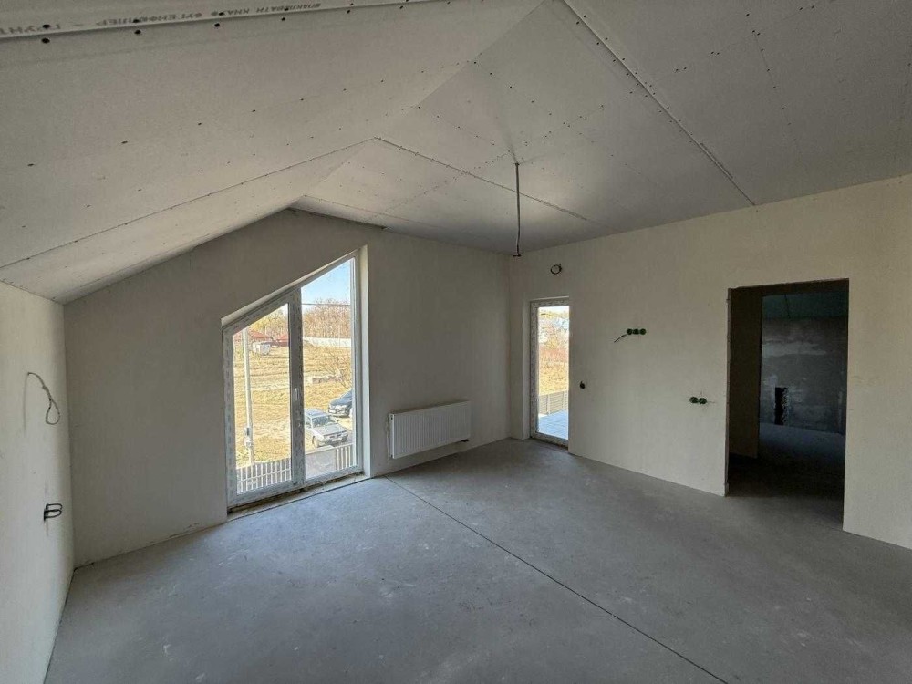 В будинку вже розведена електрика, чистова стяжка, діюче опалення на першому поверсі тепла підлога, на другому в спальних кімнатах радіатори, стелі підшиті гіпсокартоном.