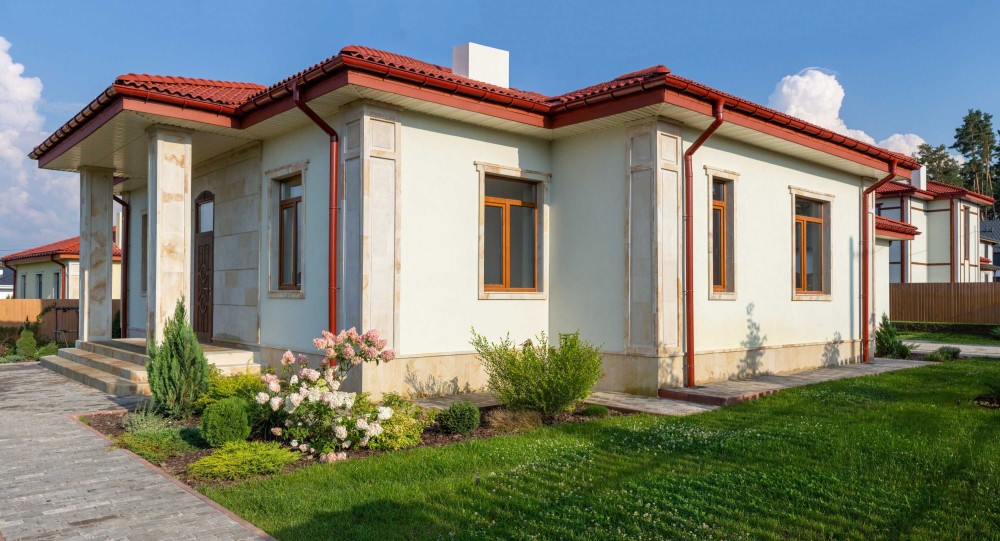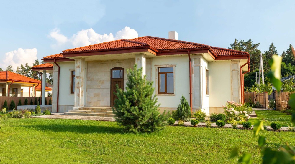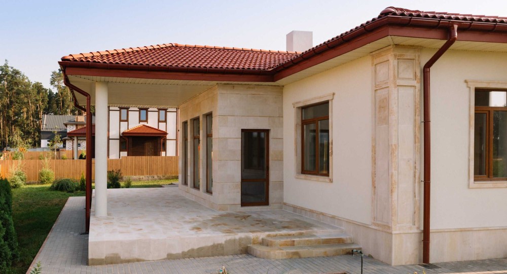 Будинок накритий цементно-піщаною черепицею. Переваги: