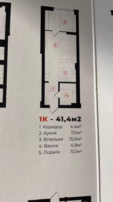 • Общая площадь 42 м2