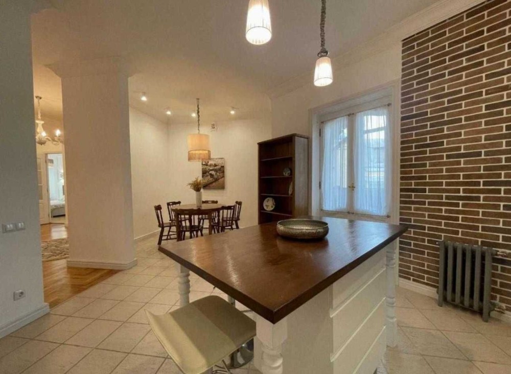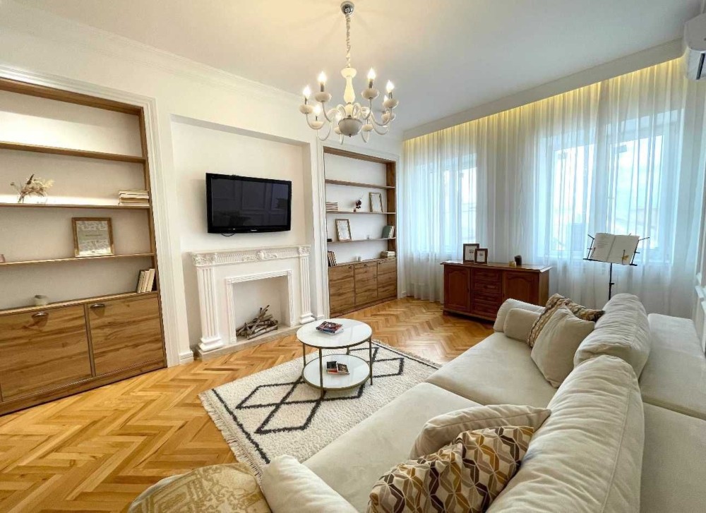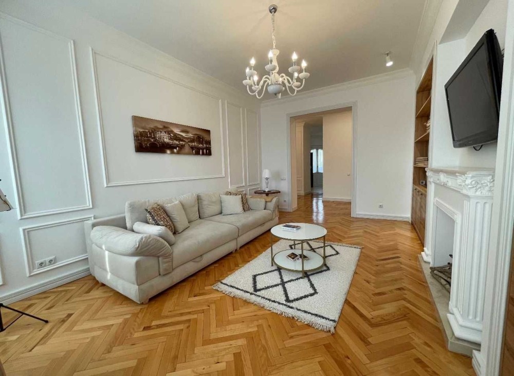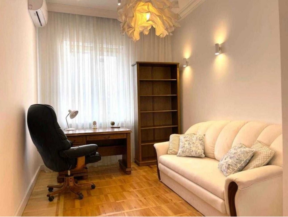 130 кв. м. ремонт 2022 року, в обробці натуральні матеріали: дубові двері, гіпсова ліпнина, натуральний паркет, мармурові поверхні. Зональне освітлення, підігрів підлоги, повністю мебльоване. Стеля 3.20.
