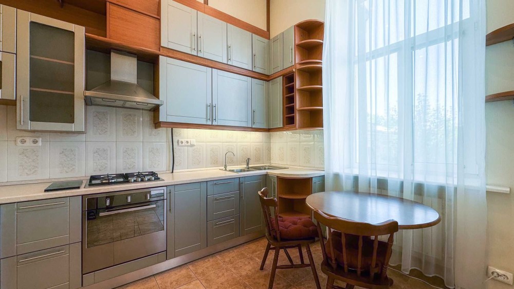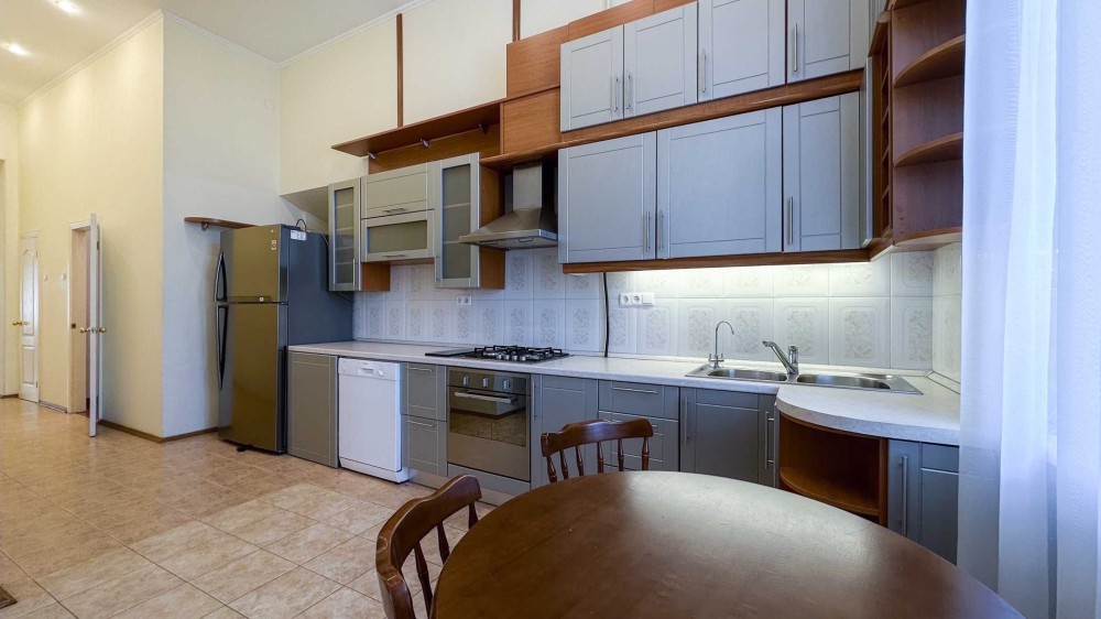 Ярославов Вал ул. 4. Старинный особняк в историческом центре Киева прямо напротив Золотых Ворот. Рядом метро, рестораны, Оперный театр, масса посольств и иностранных представительств. Квартира расположена на 3 этаже 5-этажного дома с лифтом. Чистый, светлый подъезд с мраморными ступенями, массивная деревянная дверь, закрывающаяся на кодовый замок. Общая площадь квартиры 145 кв.м. Высокие потолки – 4м. В квартире: просторная гостиная с открытым балконом и видом на Золотые Ворота, кухня, три спальни, 2 с/у и терраса с окнами во двор (выход из главной спальни). Квартира оснащена необходимой бытовой техникой, встроенной кухней, системой сигнализации, кондиционерами и т.д.