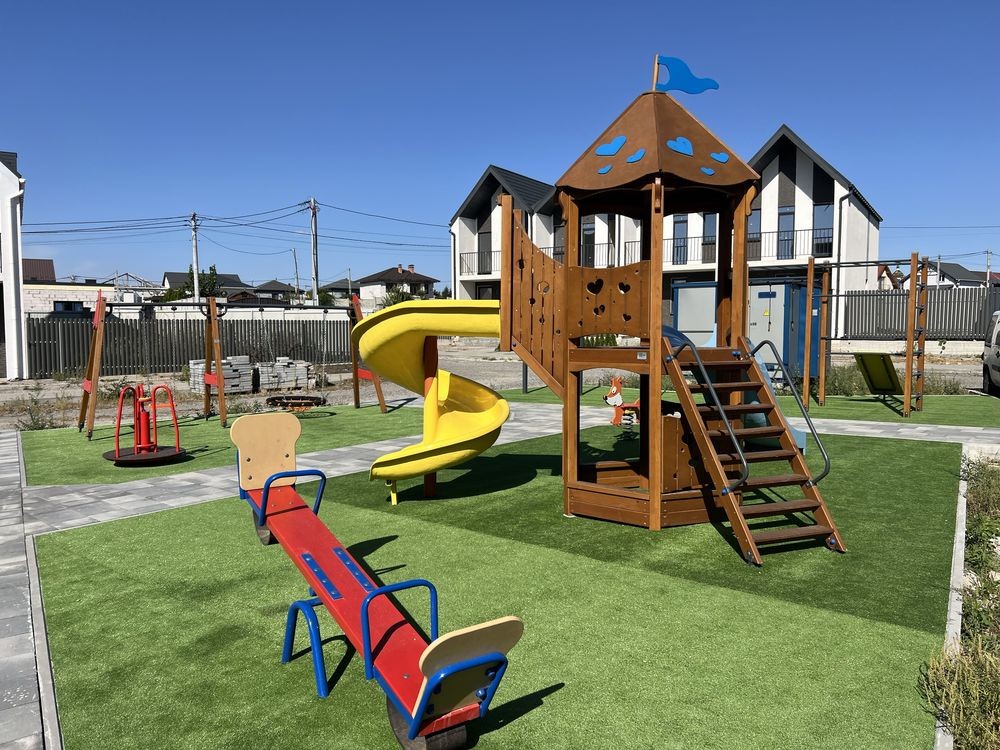 Святопетрівське Бучанський район Київська область 10 хв від Києва продам будинок, ( Таунхаус) кутовий з великою ділянкою землі 3 сотки, 96 м2 загальна площа 2 поверхи два санвузли під чистове озброєння заведені всі комунікації 10 кВат світла є можливість збільшити кількість охорона ціна 120000 у.о є розтермінування Наталія відділ продажу від забудовника