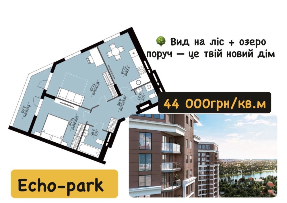 Ехо Парк, видова квартира! Знижки та розтермінування