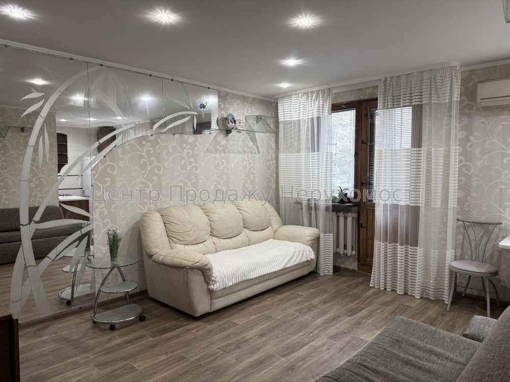 Формат – простора кухня-студія, 1 прохідна, 1 окрема кімната, сумісний санвузол, балкон. Розташована на 4му поверсі 5 поверхівки, з вікнами на тихе та зелене подвір'я.