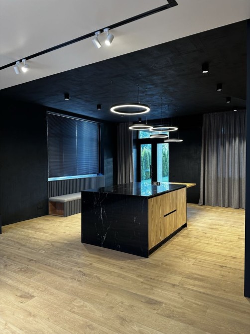Будинок відображає високий рівень дизайну та зручності у кожній деталі, все виконано з натуральних матеріалів, таких як граніт, мармур, шведська паркетна дошка з натурального дуба і багато ін.