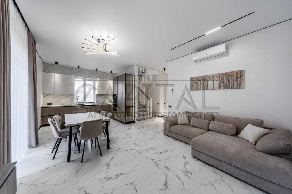 Пропонується в оренду будинок у котеджному містечку закритого типу, розташованому в селі Крюківщина, всього за 10-15 хвилин їзди від станції метро Теремки та торгово-розважального центру «Respublika Park».