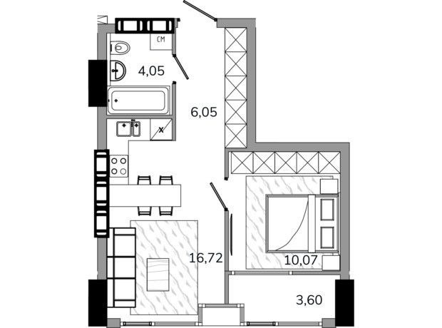 Квартира планируется в отдельную спальню, кухню-гостиную, санузел.