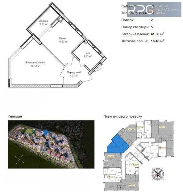 Загальна площа: 41,3 м²