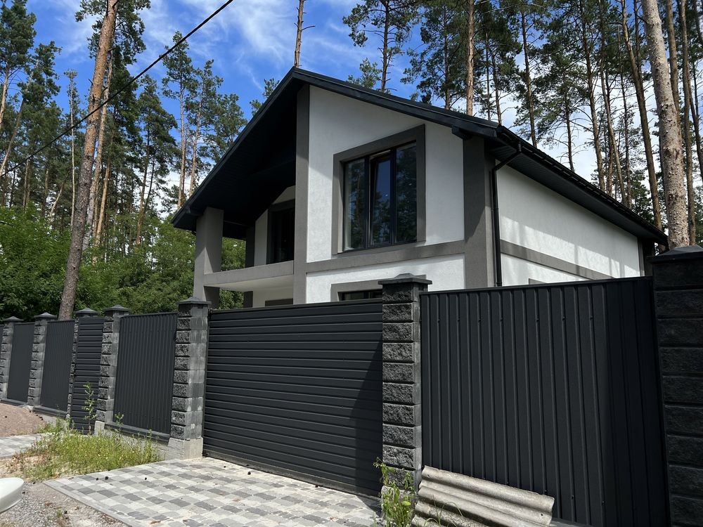 Дом окружен сосновым лесом со всех сторон – невероятная тишина и воздух. Дом очень светлый, благодаря большому количеству витражных окон, комфортабельная терраса с потрясающим видом на лес – и все это в 15 минутах езды от КП Киева.