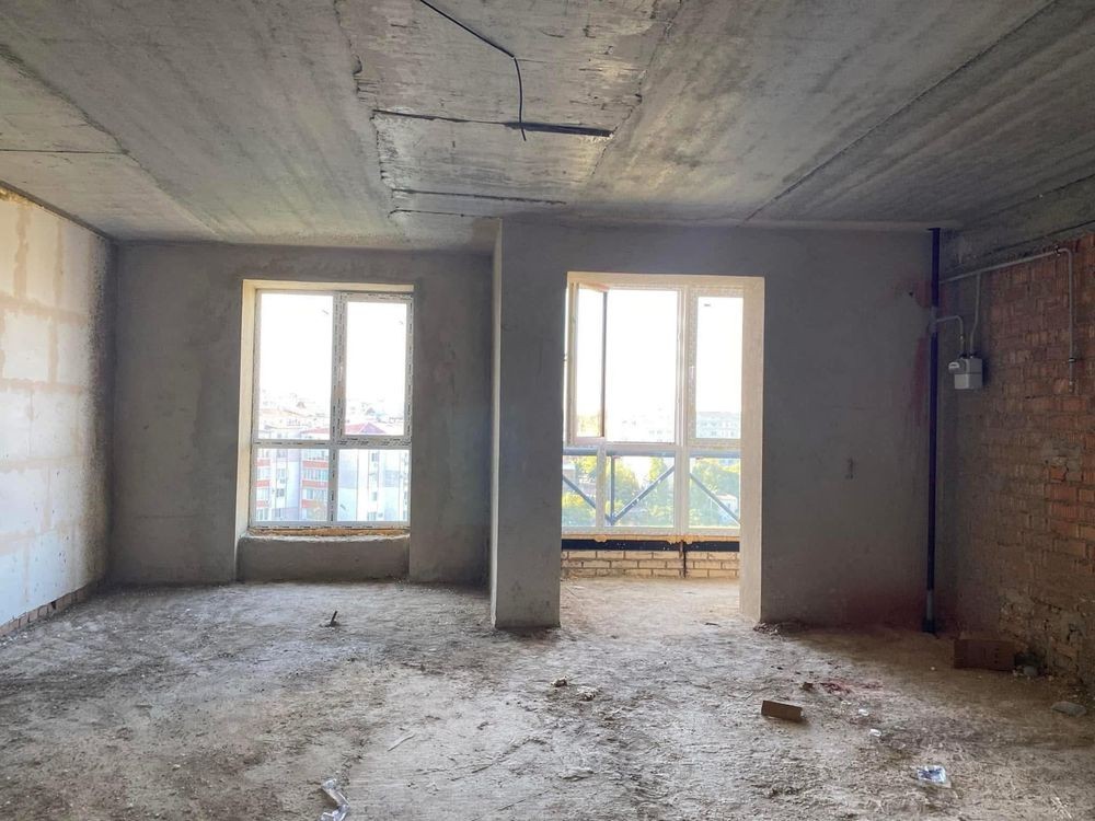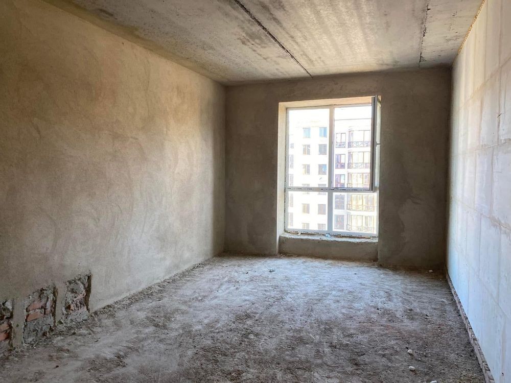 Стан від будівельника: стяжка підлоги, штукатурка стін, встановлені вхідні двері.