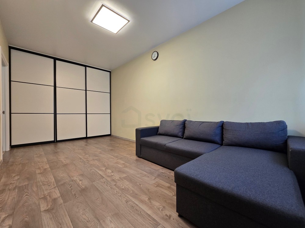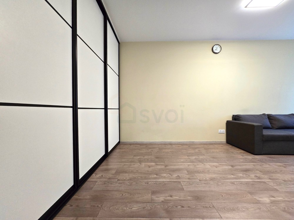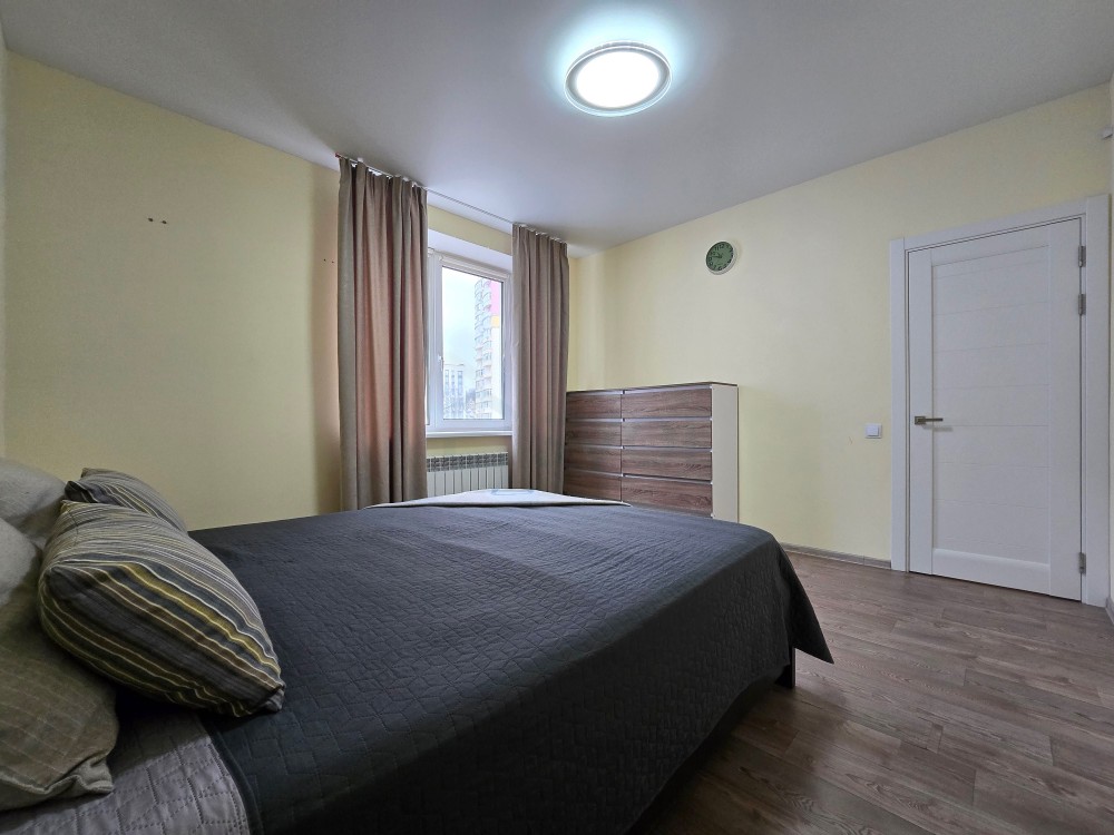 Повноцінна двокімнатна квартира. За теперішніми мірками це вже смілива євротрійка, бо на кухні теж можна комфортно спати, якщо раптом застілля з гостями до пізньої ночі. Кухня посередині між двома кімнатами — ідеальна шумоізоляція.