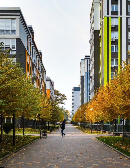 Територія ЖК зелена, затишна та без авто. Діти і дорослі гуляють спокійно, ніхто не вискакує з машини прямо перед носом.