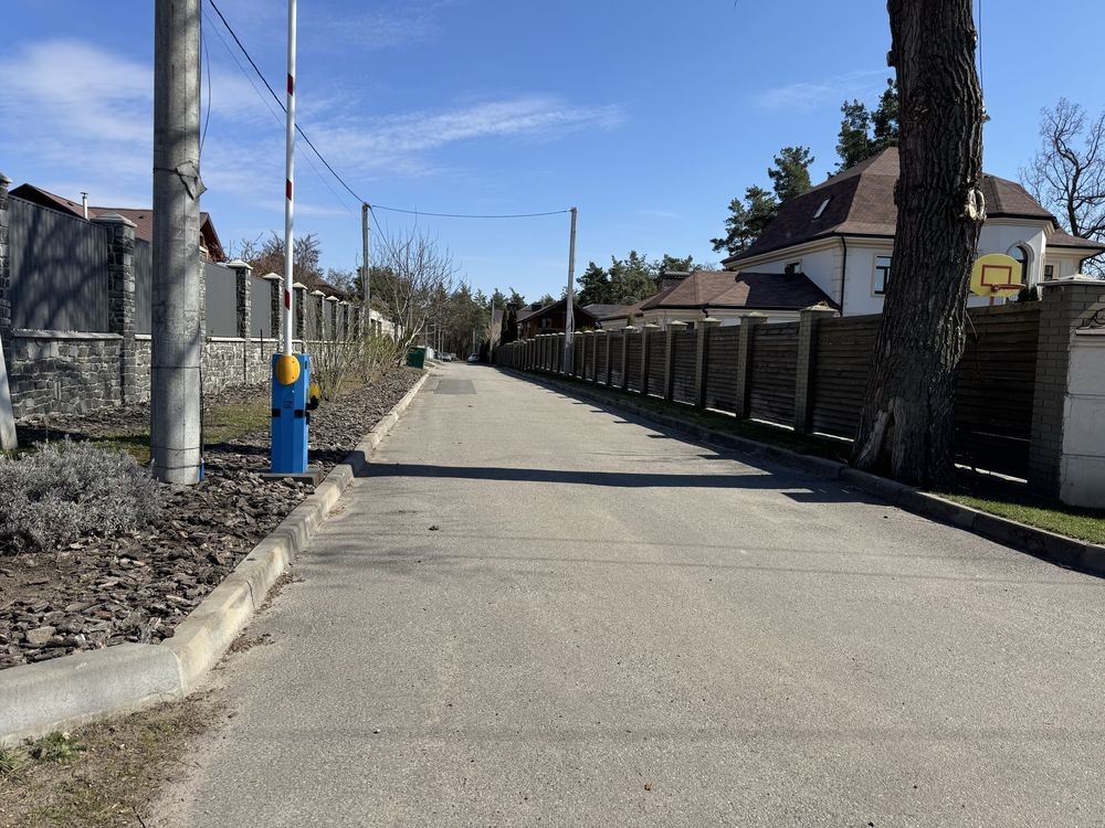 Закрита шлагбаумом вулиця , асфальт , ліс . Коттеджи