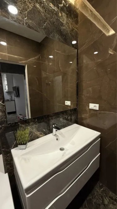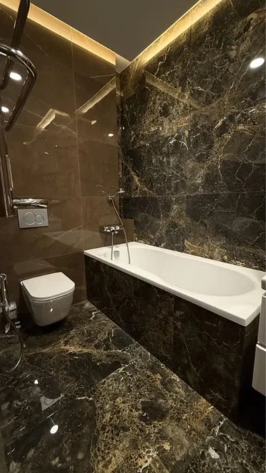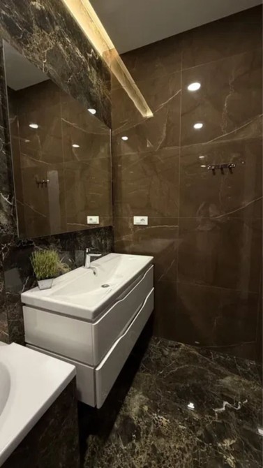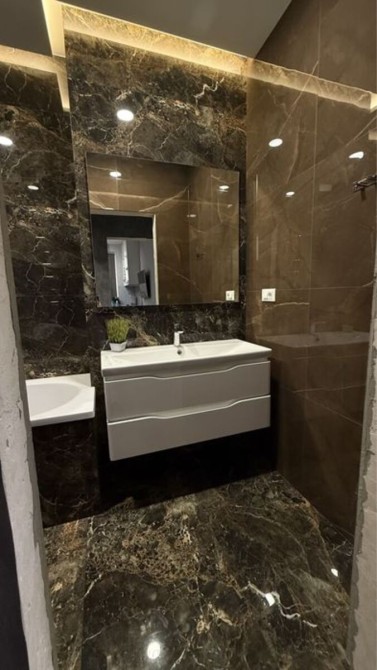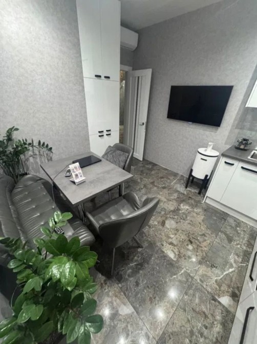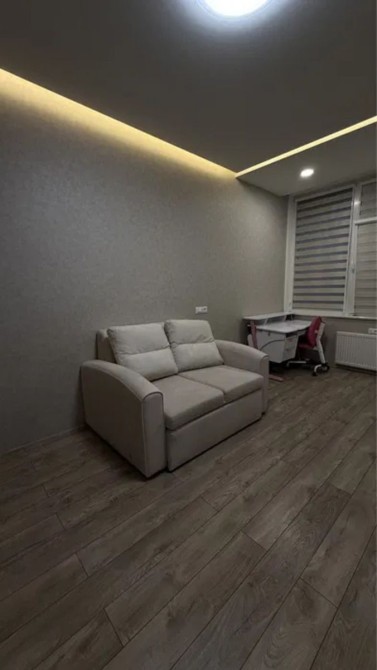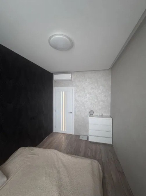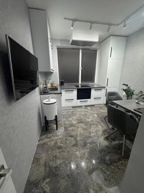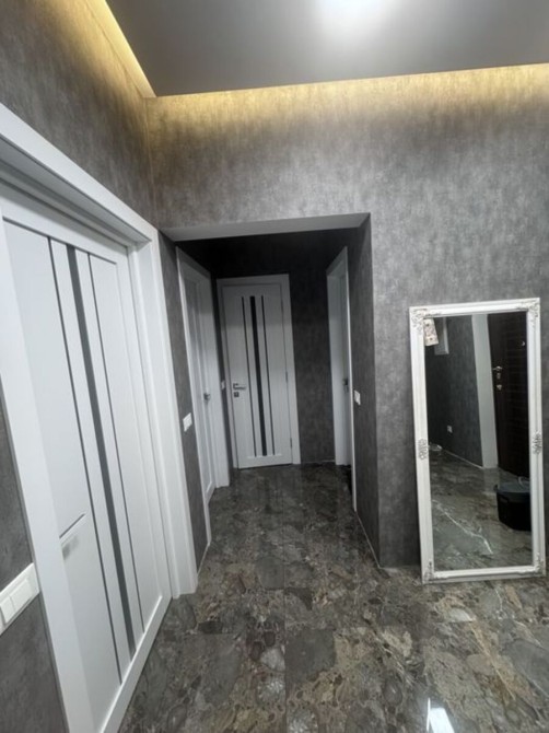 Светлая 2-комнатная квартира площадью 58 м² в 19-этажном доме; планировка раздельная: две комнаты и гардеробная, два санузла; отделка — плитка и ламинат; установлен индивидуальный теплощётчик, благодаря чему коммунальные платежи минимальные; частично укомплектована кухней, есть стиральная и посудомоечная машины, холодильник и водонагреватель Drazice; мультисплит-система Gree обеспечивает кондиционирование во всех трёх комнатах; сантехника Grohe, унитаз Roca; цена 68 000 $, торг возможен.