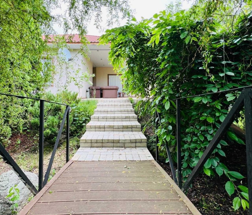 На доглянутій ділянці з дорослим ланшафтом розташований одноповерховий будинок S=150кв.м: 3 окремі кімнати, простора вітальня, кухня-столова, 2 санвузли, тераса.