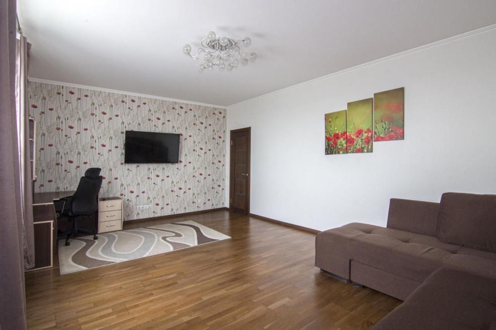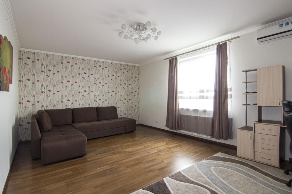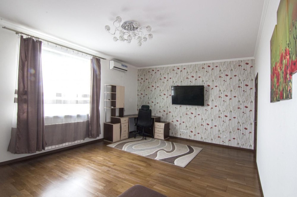 Простора кімната 26,0 кв.м., встановлений великий розкладний двоспальний диван, обладнана робоча зона, телевізор, кондиціонер.