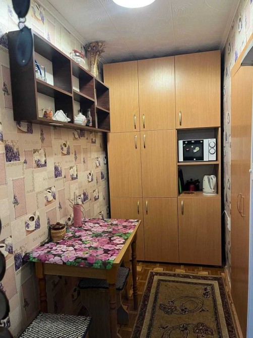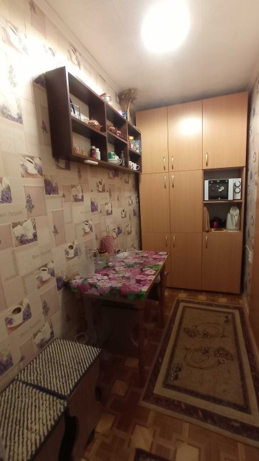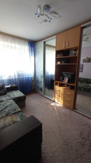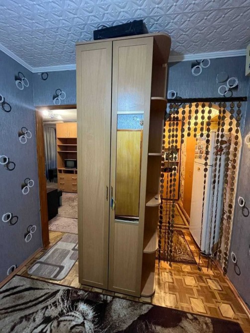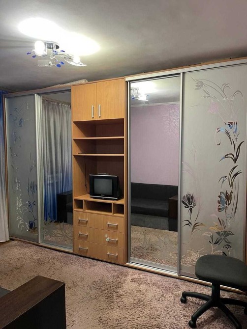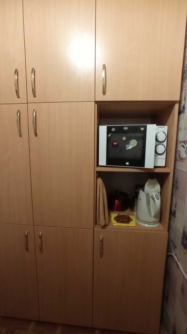 В кімнаті знаходиться: ліжко, холодильник, шкаф - купе, стіл, стільці. Також є пральна машина автомат.