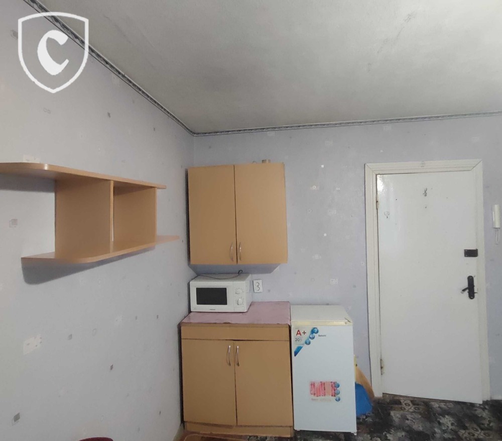 Розташована на 6 поверсі 9 - ти поверхового будинку. Загальна площа: 13 кв.м, є відокремлений куточок на загальній кухні, санвузол - в коридорi, відкритий балкон для сушки білизни.