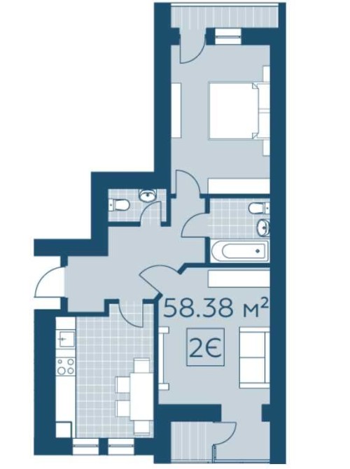 • Общая площадь 58 м2