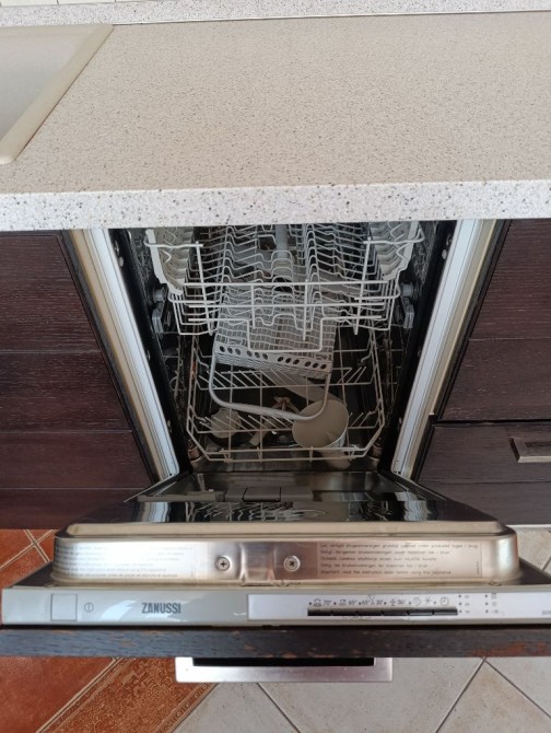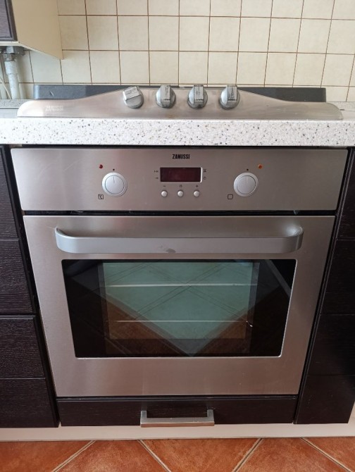 》Дерев'яна вбудована кухня з технікою Zanussi (варильна поверхня, духовка, посудомийка).