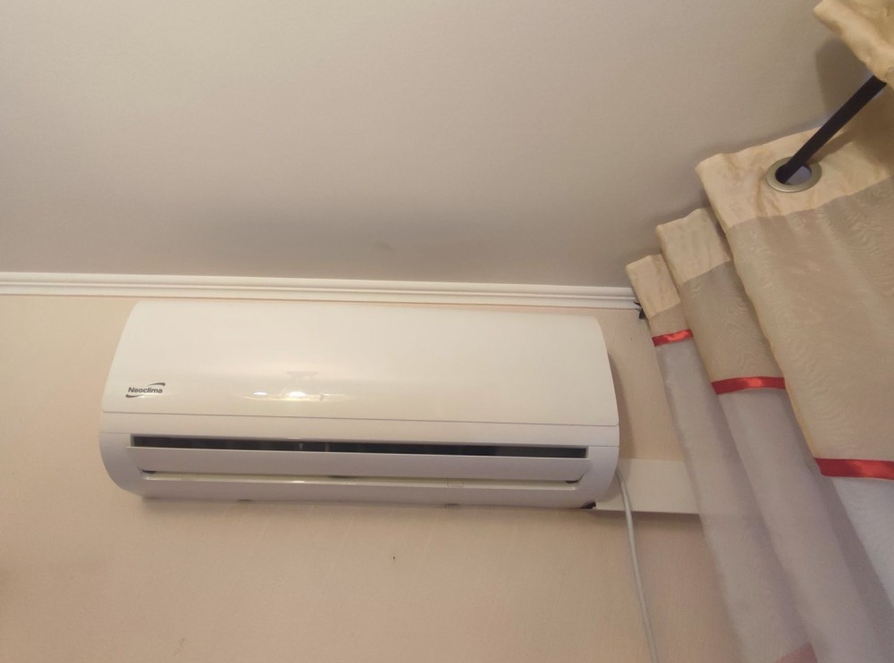 》 Кондиціонер "Neoklima" встановлений у вітальні для комфортного клімат-контролю.