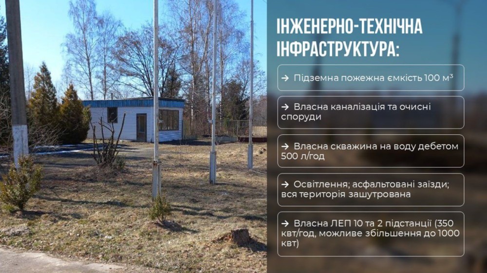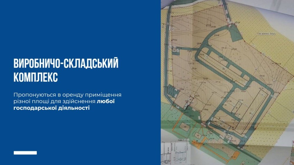 Здається в оренду виробничо-соціальна база 4000м2 виробничих приміщень ( від 500 м2 ) електроенегія 1000 кВт (2 підстанції) своя ЛЕП . Бедемо раді співпраці
