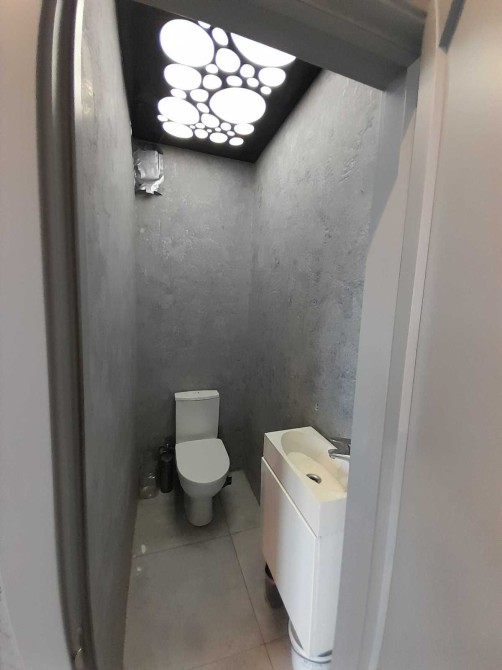 У приміщенні встановлено сучасне освітлення — точкові та лінійні світильники, які рівномірно розподіляють світло та створюють затишну атмосферу. Є всі необхідні комунікації, система опалення з радіаторами.