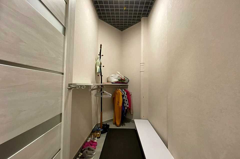 Загальна площа: 58,3 кв.м.. Планування: одна велика кімната, за дзеркальними дверима розташований санвузол, підсобне приміщення та ще одна простора кімната. Є повноцінний санвузол із встановленою сантехнікою, пральною машиною. Опалення в приміщенні електричне(заведено 15 кВт), здійснюється за рахунок радіаторів та електрокотлу, також доповнено розведена електрика з можливістю підключення акумулятора на випадок блекауту. Приміщення розташоване на повноцінному першому поверсі, без сходинок, можна зручно заходити та завозити візок, наприклад.