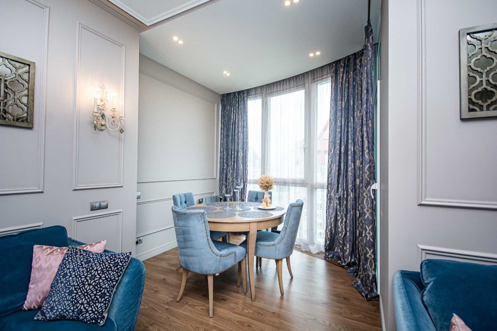 Квартира на дві сторони, з великою кухнею (за допомогою зонування перетворюється в 3к квартиру), окреме приміщення для гардеробу.