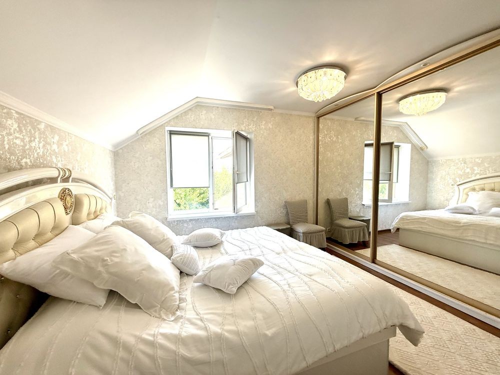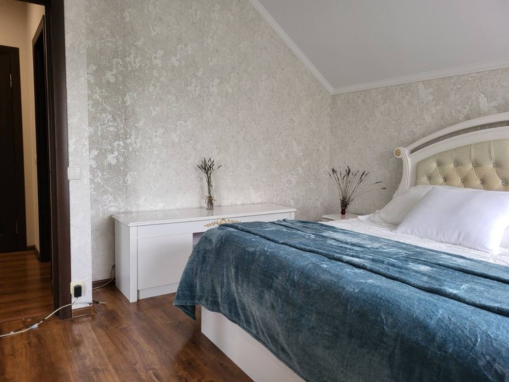 На другому поверсі знаходяться чотири спальні з вбиральними. Є два види опалення ( газове, електричне), 3 фази, тепла підлога на двох поверхах. По периметру будинку - гарний паркан. Меблі і техніка залишаються за домовленістю. Запрошуємо вас на перегляд!