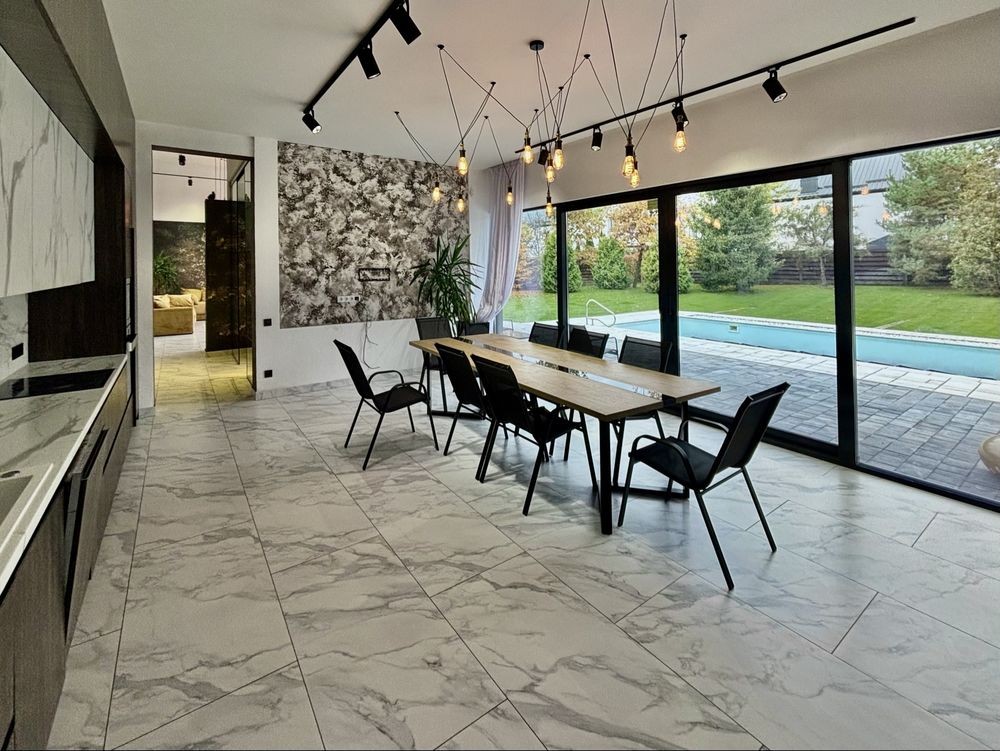 Продажа современного двухэтажного дома площадью 291,37 м² с бассейном в Петропавловской Борщаговке (ул. Княгини Ольги, 14).