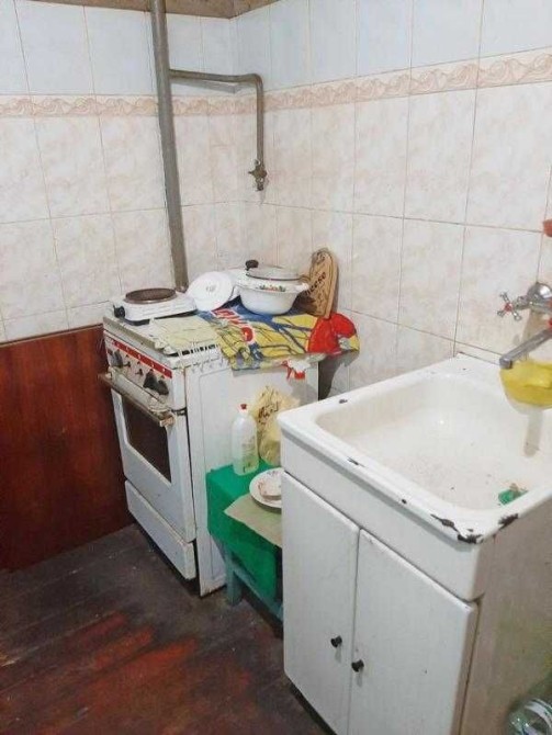 Комната в хорошем, ухоженном состоянии. Сталинка. Теплый дом из красного кирпича. Службы общие, есть возможность сделать свои.