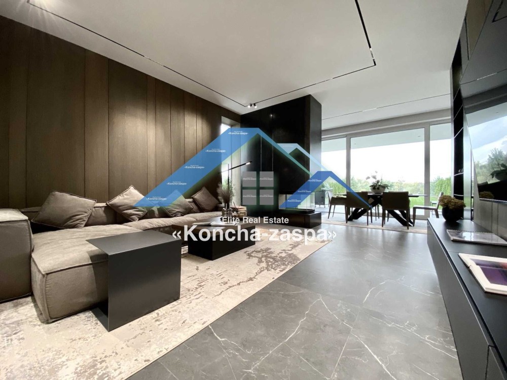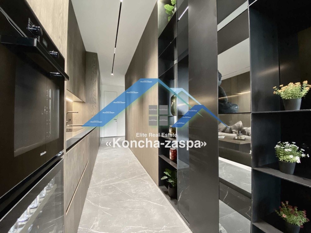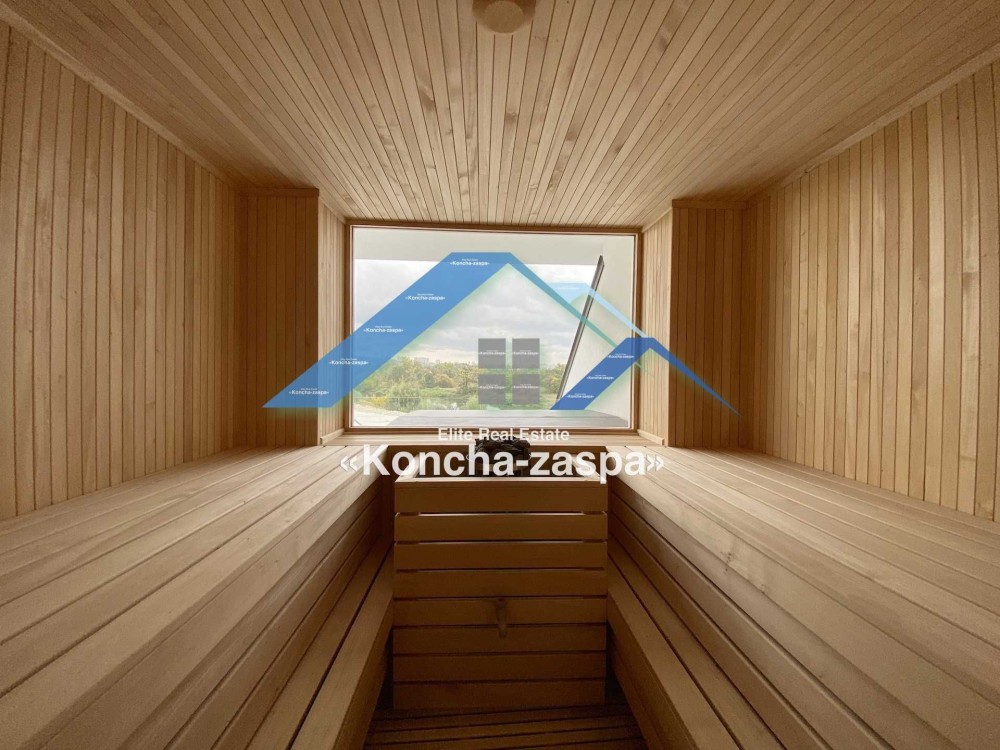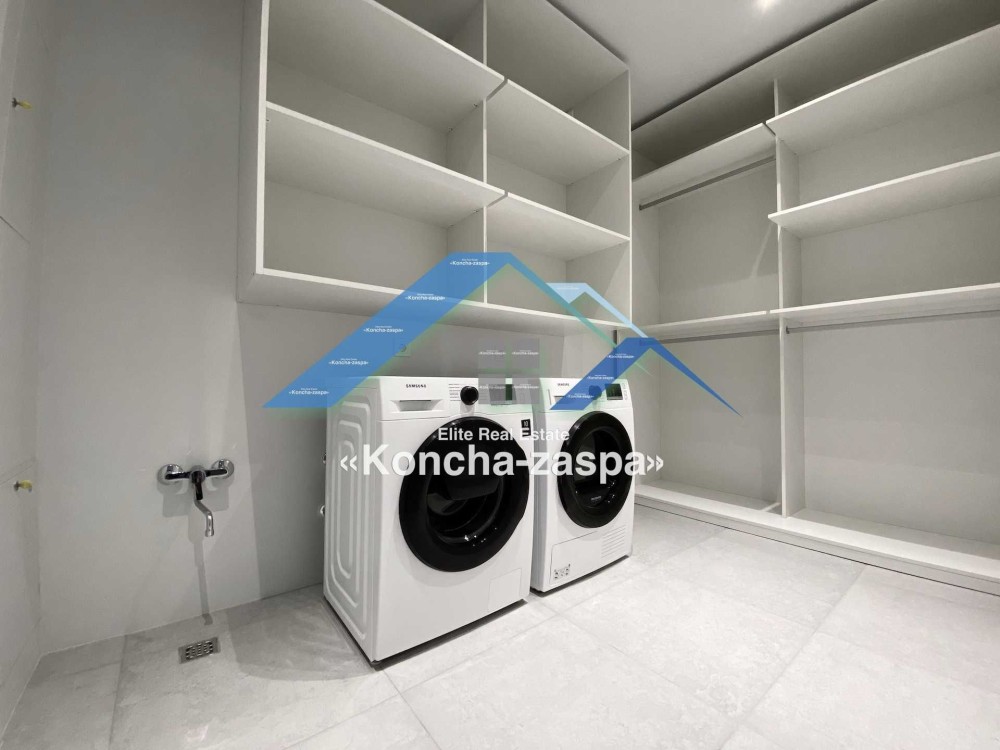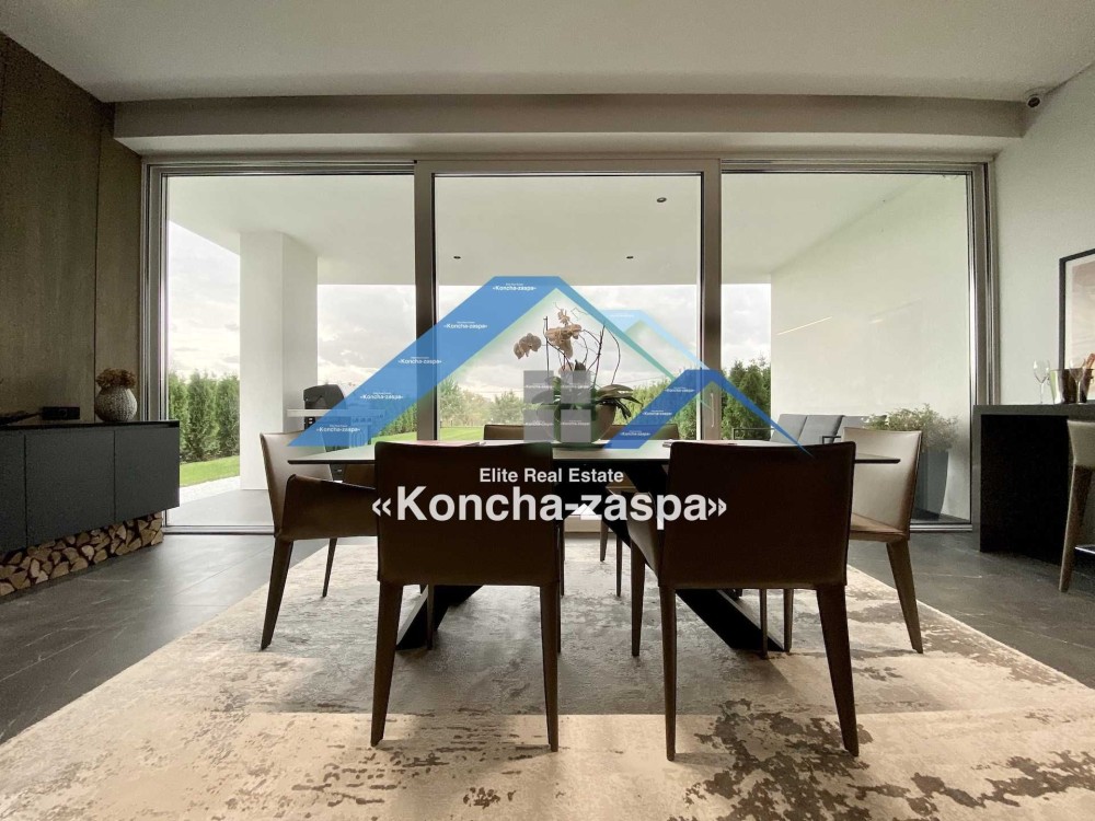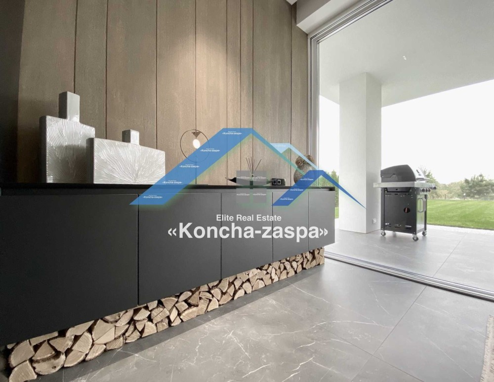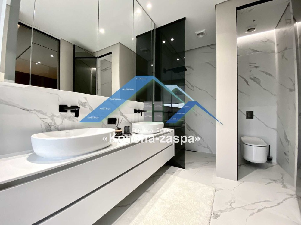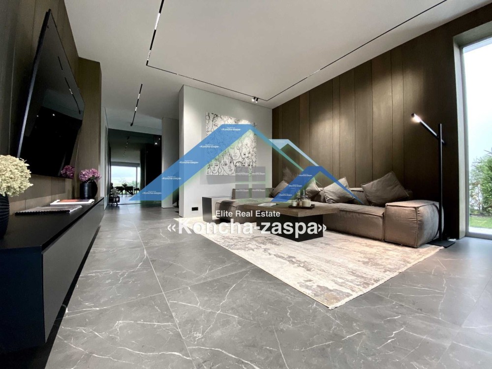 Дома дуплексы 300м2 с ремонтом и мебелью премиум-класса, выполнены из высококачественных материалов в ультрасовременном дизайне из натуральных материалов. 1-й этаж — прихожая, большая гардеробная, просторная гостиная с двухсторонним камином, столовая зона с панорамным окном и выходом на террасу, кухня, гостевой с/у; 2-й этаж - две спальни, два с/у, хозяйская спальня со своим с/у и двумя гардеробными; 3-й этаж - лаунж-зона, комната отдыха, выход на террасу с джакузи, сауна, с/у, бытовая комната укомплектованная стеллажами, стиральной и сушильной машиной Samsung. Полы с подогревом, котел Wiesmann; система Умный дом; Алюминиевые витражные окна; система двойной водоочистки; сантехника Hansgrohe, Grohe, Geberit, Devit; кухня Rait с фасадами из натурального дубового шпона, столешница - мрамор, техника Miele, Liebherr; мягкая мебель Bonaldo, двери Elio. Настенные панели - натуральный дубовый шпон. Участок 5 соток, высажен травой и туями, оборудован автополивом.