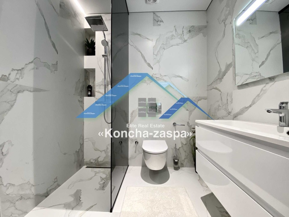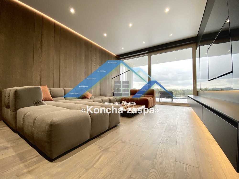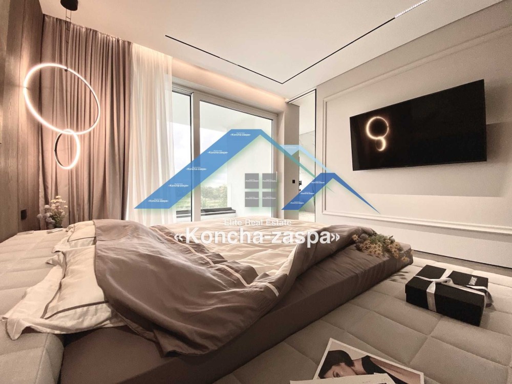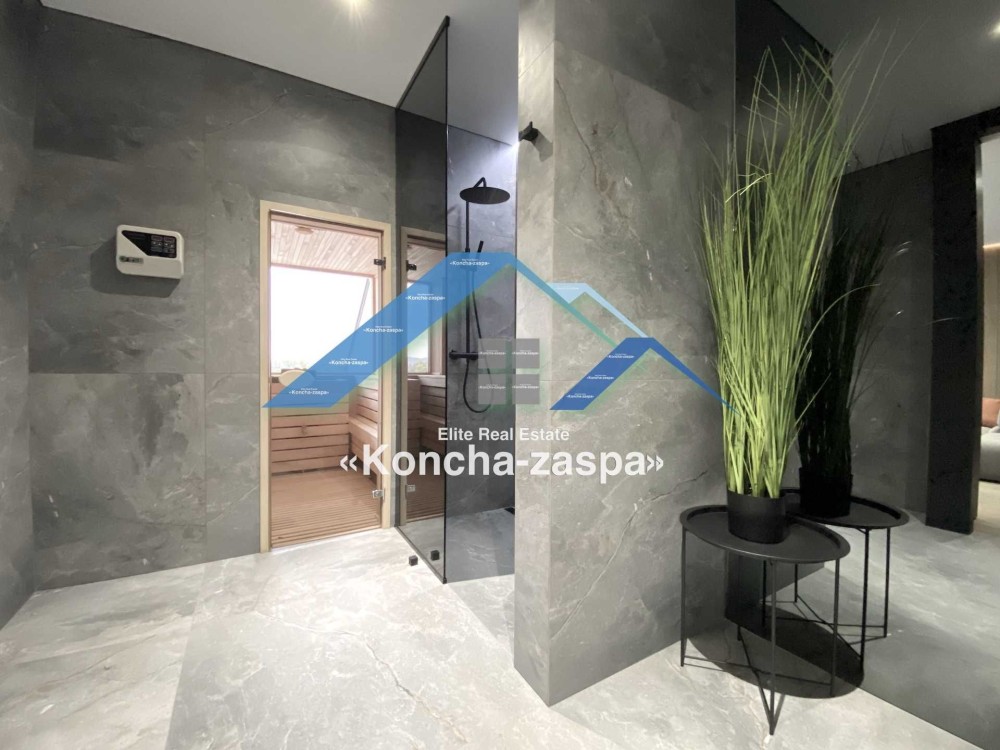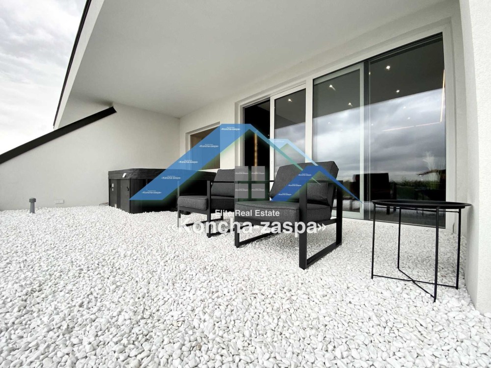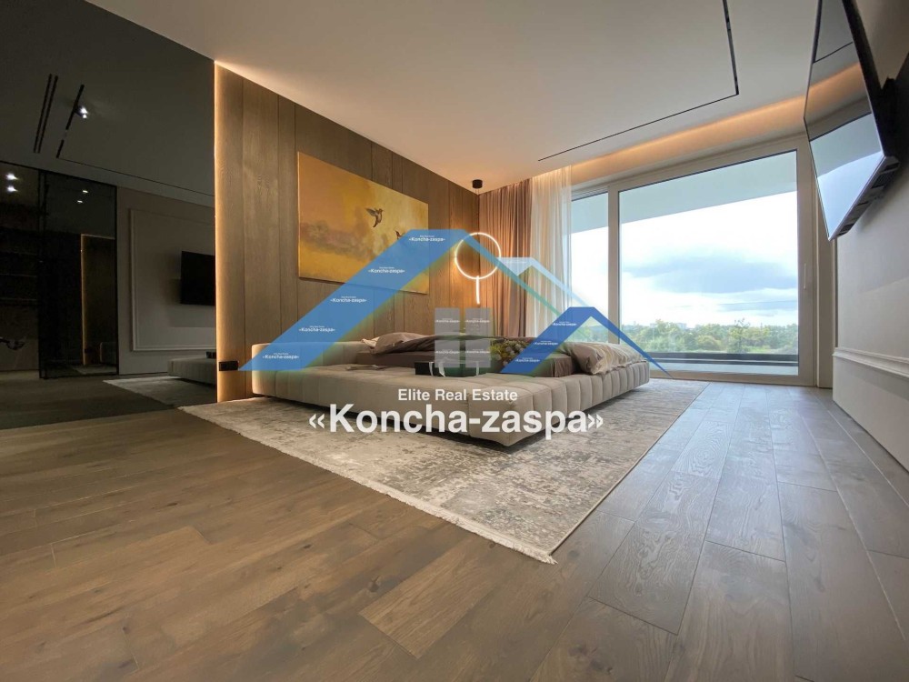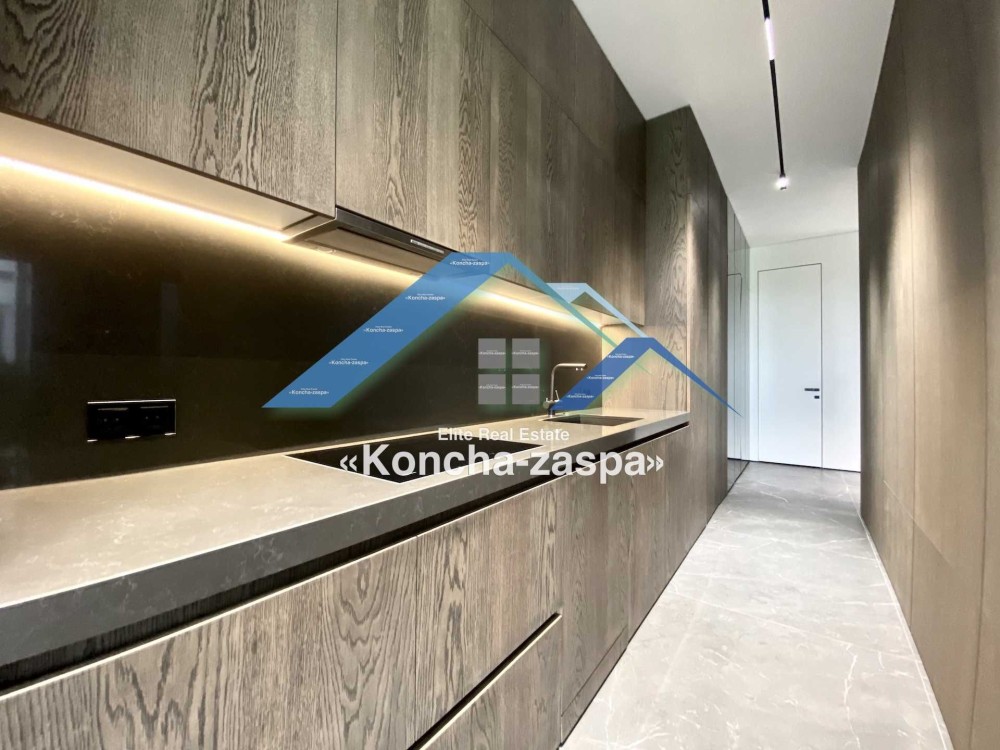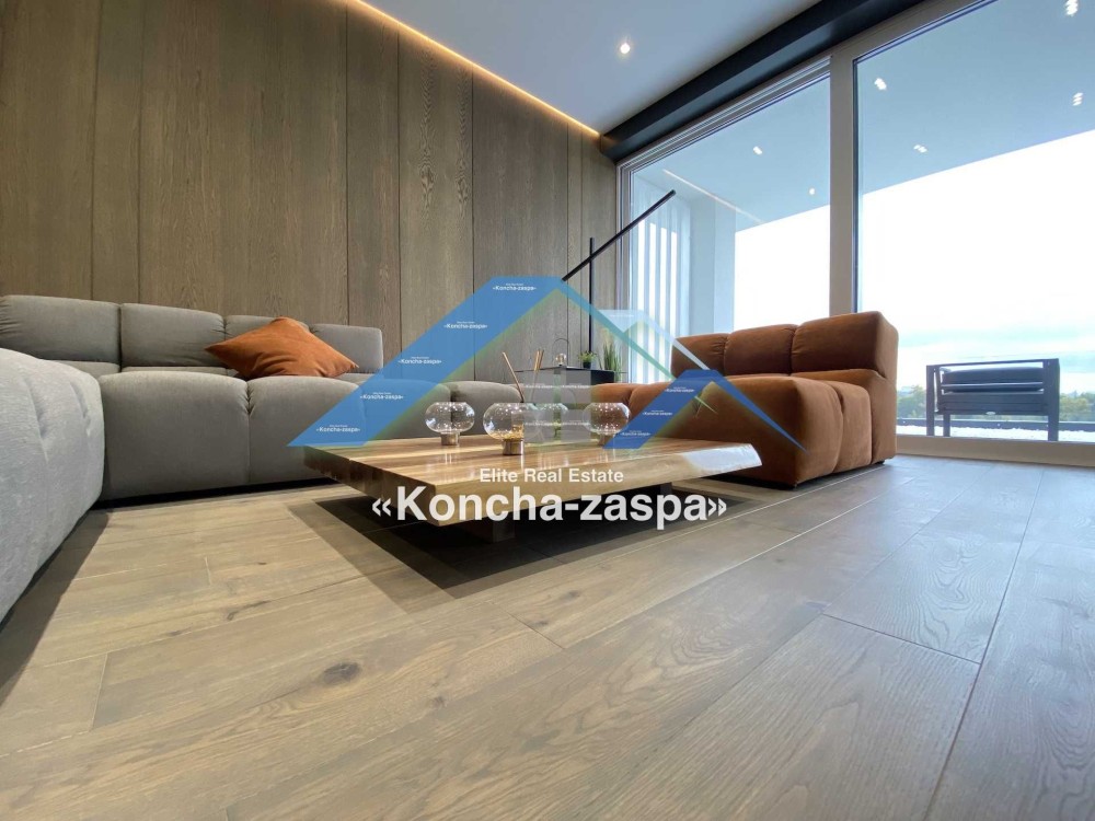 Дома дуплексы 300м2 с ремонтом и мебелью премиум-класса, выполнены из высококачественных материалов в ультрасовременном дизайне из натуральных материалов. 1-й этаж — прихожая, большая гардеробная, просторная гостиная с двухсторонним камином, столовая зона с панорамным окном и выходом на террасу, кухня, гостевой с/у; 2-й этаж - две спальни, два с/у, хозяйская спальня со своим с/у и двумя гардеробными; 3-й этаж - лаунж-зона, комната отдыха, выход на террасу с джакузи, сауна, с/у, бытовая комната укомплектованная стеллажами, стиральной и сушильной машиной Samsung. Полы с подогревом, котел Wiesmann; система Умный дом; Алюминиевые витражные окна; система двойной водоочистки; сантехника Hansgrohe, Grohe, Geberit, Devit; кухня Rait с фасадами из натурального дубового шпона, столешница - мрамор, техника Miele, Liebherr; мягкая мебель Bonaldo, двери Elio. Настенные панели - натуральный дубовый шпон. Участок 5 соток, высажен травой и туями, оборудован автополивом.