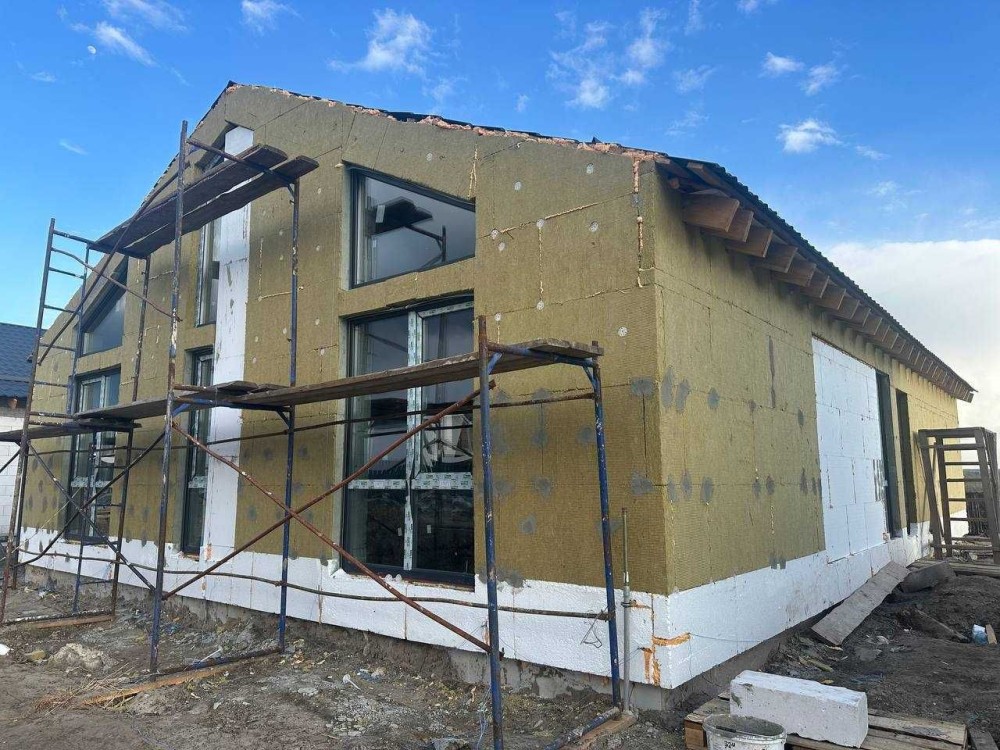 Фасад - утеплення базальтовою ватою 100 мм, нанесення декоративної штукатурки та фарбування, планкен.